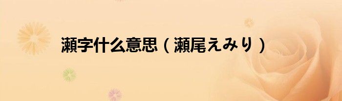 大家好,小问来为大家解答以上问题。瀬字什么意思,瀬尾えみり这个很多人还不知道,现在让我们一起来看看吧!