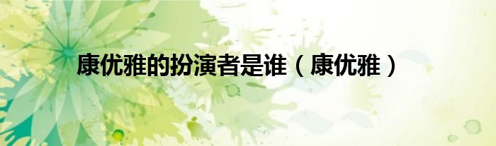 大家好,小问来为大家解答以上问题。康优雅的扮演者是谁,康优雅这个很多人还不知道,现在让我们一起来看看吧!