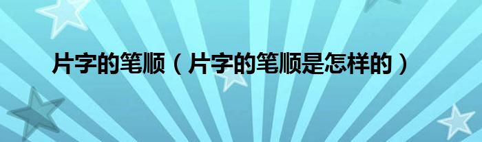 大家好,片字的笔顺,片字的笔顺是怎样的很多人还不知道,现在让我们一起来看看吧!