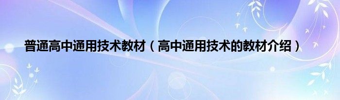 本文,普通高中通用技术教材,高中通用技术的教材介绍到此就分享完毕,希望对大家有所帮助。