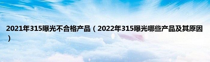 大家好,2021年315曝光不合格产品,2022年315曝光哪些产品及其原因很多人还不知道,现在让我们一起来看看吧!