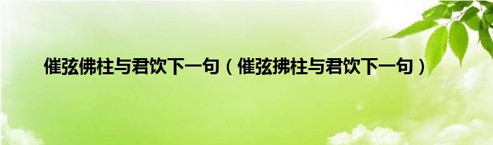 大家好,催弦佛柱与君饮下一句,催弦拂柱与君饮下一句很多人还不知道,现在让我们一起来看看吧!