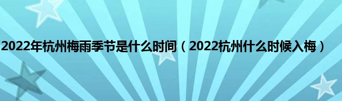 本文,2022年杭州梅雨季节是什么时间,2022杭州什么时候入梅到此就分享完毕,希望对大家有所帮助。