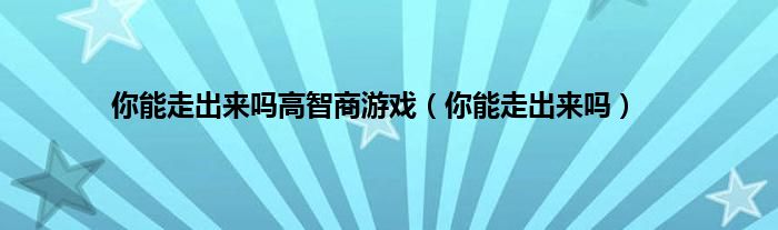 以上就是【你能走出来吗高智商游戏,你能走出来吗】相关内容。