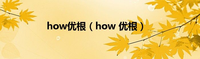 大家好,小问来为大家解答以上问题。how优根,how 优根这个很多人还不知道,现在让我们一起来看看吧!