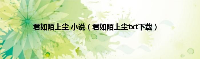 大家好,小问来为大家解答以上问题。君如陌上尘 小说,君如陌上尘txt下载这个很多人还不知道,现在让我们一起来看看吧!