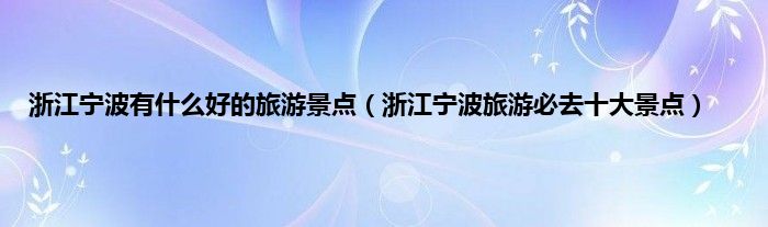 本文,浙江宁波有什么好的旅游景点,浙江宁波旅游必去十大景点到此就分享完毕,希望对大家有所帮助。