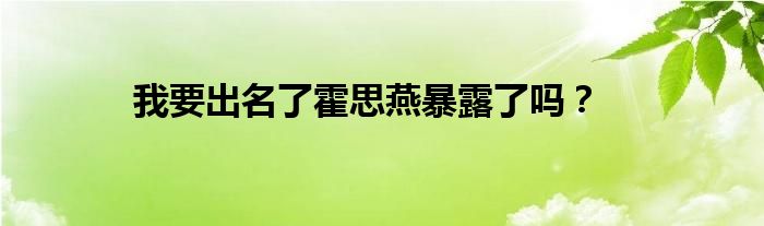 我要出名了霍思燕暴露了吗?