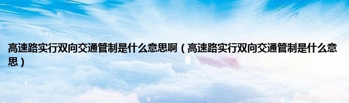 大家好,高速路实行双向交通管制是什么意思啊,高速路实行双向交通管制是什么意思很多人还不知道,现在让我们一起来看看吧!