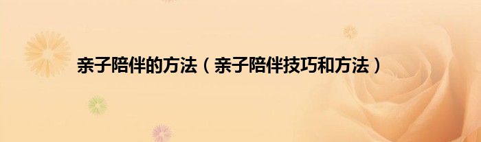 本文,亲子陪伴的方法,亲子陪伴技巧和方法到此就分享完毕,希望对大家有所帮助。