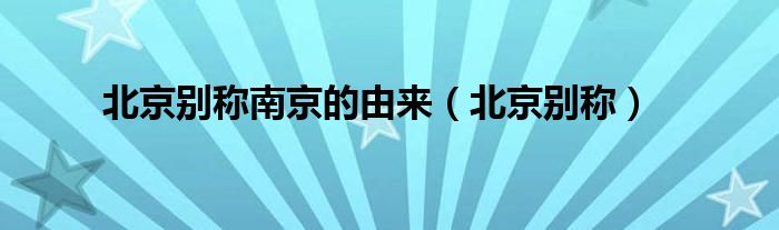 北京别称南京的由来(北京别称)