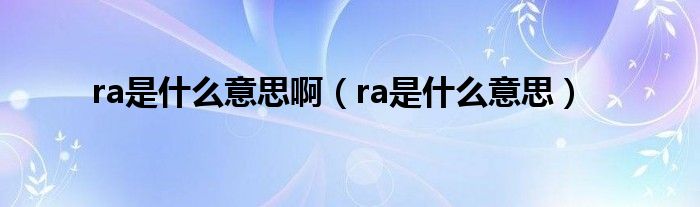 以上就是【ra是什么意思啊,ra是什么意思】相关内容。