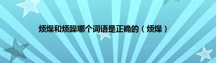 以上就是【烦燥和烦躁哪个词语是正确的,烦燥】相关内容。