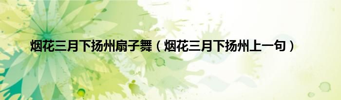 以上就是【烟花三月下扬州扇子舞,烟花三月下扬州上一句】相关内容。