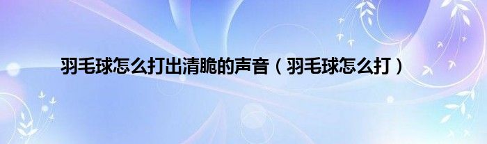 以上就是【羽毛球怎么打出清脆的声音,羽毛球怎么打】相关内容。