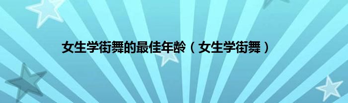 以上就是【女生学街舞的最佳年龄,女生学街舞】相关内容。