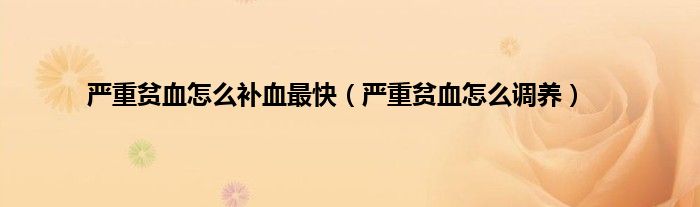 以上就是【严重贫血怎么补血最快,严重贫血怎么调养】相关内容。