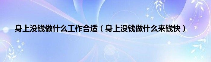 以上就是【身上没钱做什么工作合适,身上没钱做什么来钱快】相关内容。