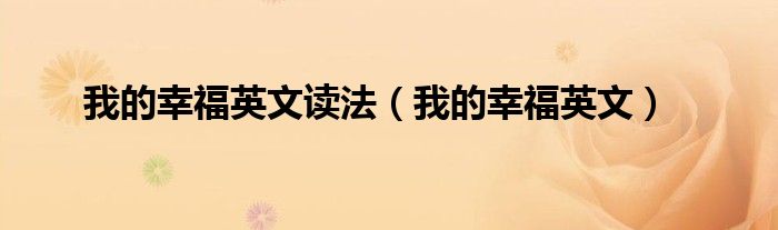 以上就是【我的幸福英文读法,我的幸福英文】相关内容。