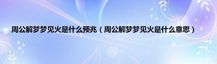 大家好,综合小编来为大家讲解下。周公解梦梦见火是什么预兆,周公解梦梦见火是什么意思这个很多人还不知道,现在让我们一起来看看吧!