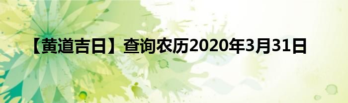 大家好,综合小编来为大家讲解下。【黄道吉日】查询农历2020年3月31日这个很多人还不知道,现在让我们一起来看看吧!