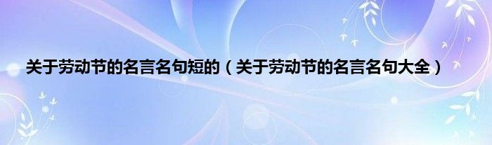 大家好,综合小编来为大家讲解下。关于劳动节的名言名句短的,关于劳动节的名言名句大全这个很多人还不知道,现在让我们一起来看看吧!