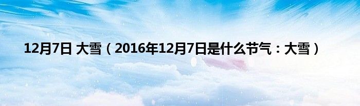 本文12月7日 大雪,2016年12月7日是什么节气:大雪到此分享完毕,希望对大家有所帮助。