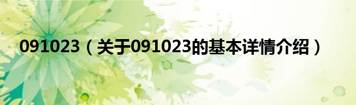 本文关于091023的基本详情介绍就讲解完毕,希望对大家有所帮助。
