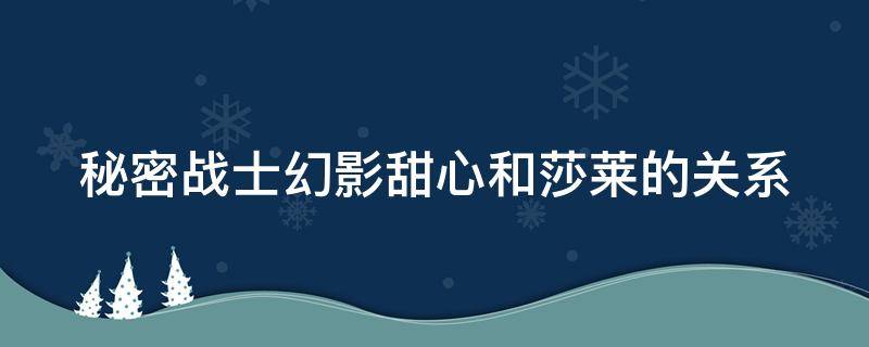 秘密战士幻影甜心和莎莱的关系是朋友。《秘密战士幻影甜心》是东京电视台于2019年4月7日播出的少女向特摄剧。由三池崇史执导,加藤阳一编剧,菱田未渚美、山口绮罗、原田都爱、石井兰主演。讲述了被选为神秘的怪盗幻影甜心的四位女孩子们,接受了身为BOSS的梵迪的命令,守护世界和平的故事。