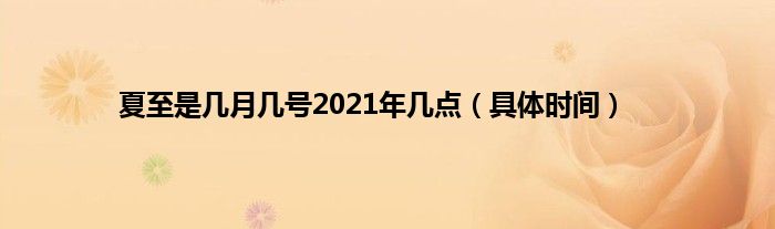 大家好,综合小编来为大家讲解下。夏至是几月几号2021年几点,具体时间这个很多人还不知道,现在让我们一起来看看吧!