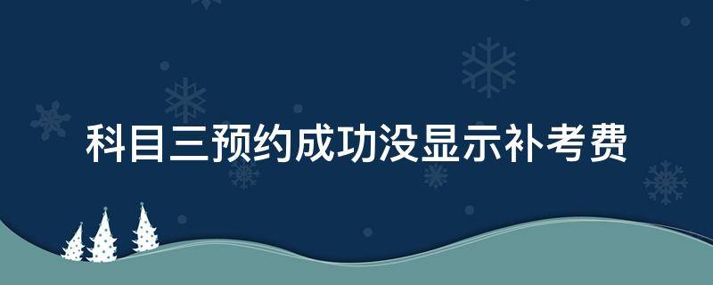 科目三预约成功没显示补考费可能是因为没有刷新,刷新即可。或者是因为两次都挂科了,不是当天显示补考费,而是在科一到科四所有科目考完之后,拿驾照的那天才需要交补考费。如果补考预约成功后没有及时缴费,考试也是可以正常进行的,考完后补缴即可,并不会出现考官不允许进场的情况。科目三,包括道路驾驶技能考试、安全文明驾驶常识考试,是机动车驾驶证考核的一部分,是机动车驾驶人考试中道路驾驶技能和安全文明驾驶常识考试科目的简称。不同的准驾车型道路驾驶技能考试内容不同。