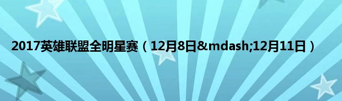 大家好,综合小编来为大家讲解下。2017英雄联盟全明星赛,12月8日—12月11日这个很多人还不知道,现在让我们一起来看看吧!