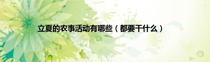 大家好,综合小编来为大家讲解下。立夏的农事活动有哪些,都要干什么这个很多人还不知道,现在让我们一起来看看吧!