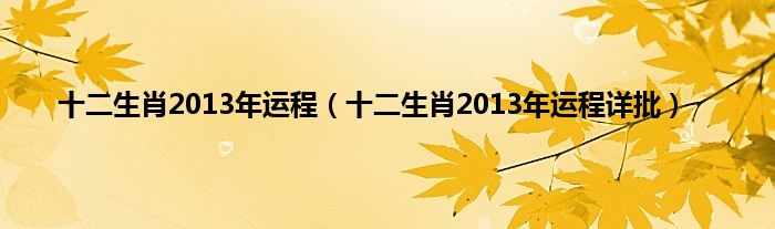 大家好,综合小编来为大家讲解下。十二生肖2013年运程,十二生肖2013年运程详批这个很多人还不知道,现在让我们一起来看看吧!
