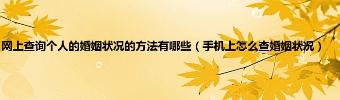 本文网上查询个人的婚姻状况的方法有哪些,手机上怎么查婚姻状况到此分享完毕,希望对大家有所帮助。