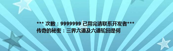 本文*** 次数:9999999 已用完请联系开发者*** 传奇的秘密:三界六道及六道轮回是何到此分享完毕,希望对大家有所帮助。
