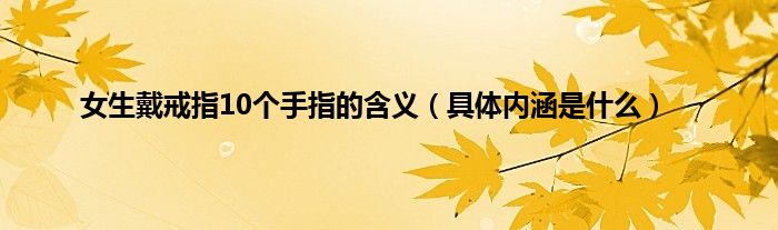 大家好,综合小编来为大家讲解下。女生戴戒指10个手指的含义,具体内涵是什么这个很多人还不知道,现在让我们一起来看看吧!