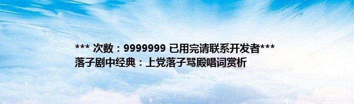 本文*** 次数:9999999 已用完请联系开发者*** 落子剧中经典:上党落子骂殿唱词赏析到此分享完毕,希望对大家有所帮助。