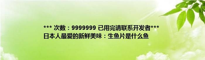 本文*** 次数:9999999 已用完请联系开发者*** 日本人最爱的新鲜美味:生鱼片是什么鱼到此分享完毕,希望对大家有所帮助。