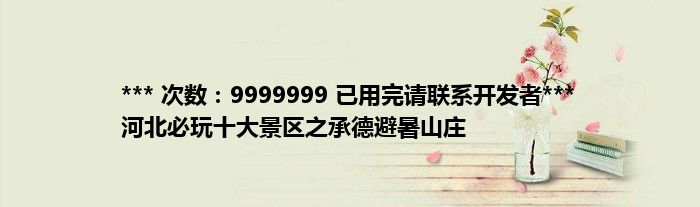 本文*** 次数:9999999 已用完请联系开发者*** 河北必玩十大景区之承德避暑山庄到此分享完毕,希望对大家有所帮助。