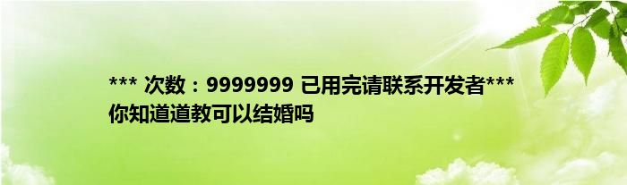 本文*** 次数:9999999 已用完请联系开发者*** 你知道道教可以结婚吗到此分享完毕,希望对大家有所帮助。
