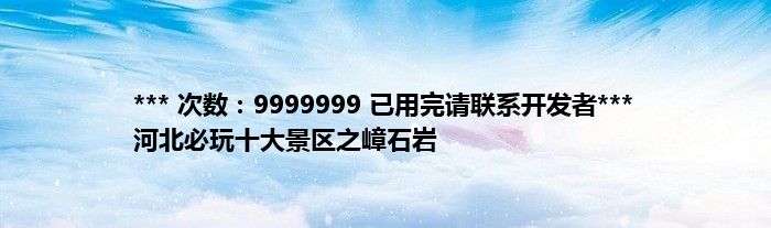 大家好,综合小编来为大家讲解下。*** 次数:9999999 已用完请联系开发者*** 河北必玩十大景区之嶂石岩这个很多人还不知道,现在让我们一起来看看吧!