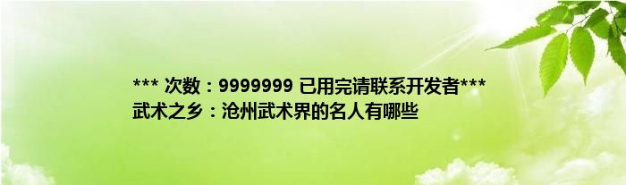 本文*** 次数:9999999 已用完请联系开发者*** 武术之乡:沧州武术界的名人有哪些到此分享完毕,希望对大家有所帮助。