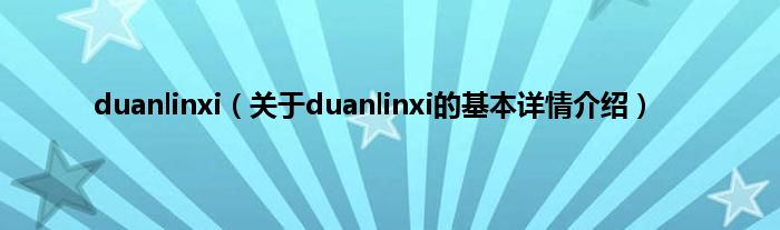 duanlinxi(关于duanlinxi的基本详情介绍)