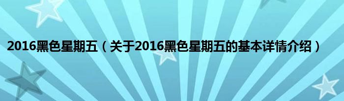 本文关于2016黑色星期五的基本详情介绍就讲解完毕,希望对大家有所帮助。