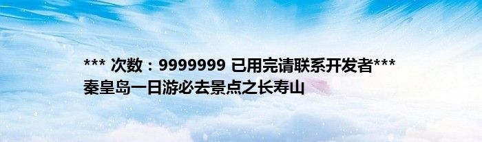本文*** 次数:9999999 已用完请联系开发者*** 秦皇岛一日游必去景点之长寿山到此分享完毕,希望对大家有所帮助。