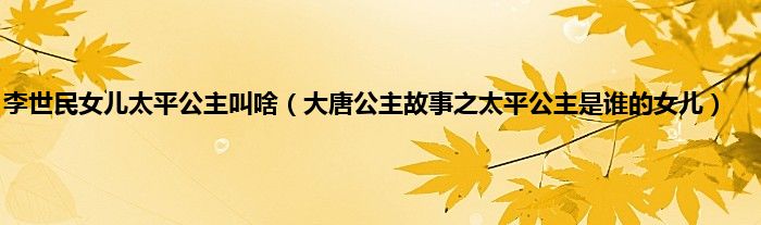 大家好,综合小编来为大家讲解下。李世民女儿太平公主叫啥,大唐公主故事之太平公主是谁的女儿这个很多人还不知道,现在让我们一起来看看吧!