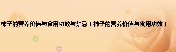 大家好,综合小编来为大家讲解下。柿子的营养价值与食用功效与禁忌,柿子的营养价值与食用功效这个很多人还不知道,现在让我们一起来看看吧!
