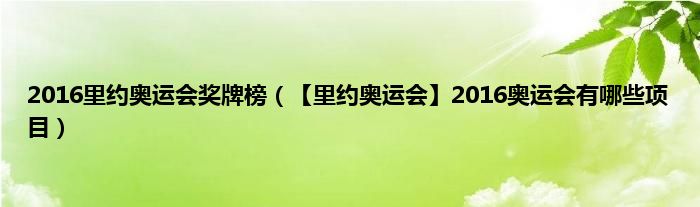 大家好,综合小编来为大家讲解下。2016里约奥运会奖牌榜,【里约奥运会】2016奥运会有哪些项目这个很多人还不知道,现在让我们一起来看看吧!