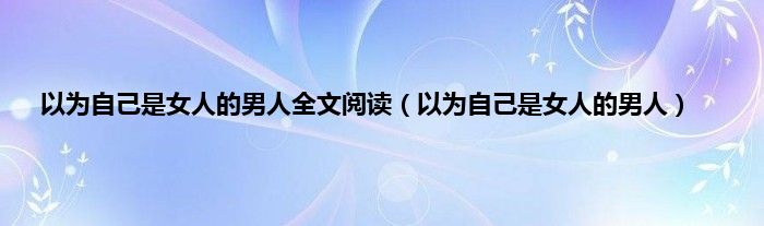 大家好,小问来为大家解答以上问题。以为自己是女人的男人全文阅读,以为自己是女人的男人这个很多人还不知道,现在让我们一起来看看吧!